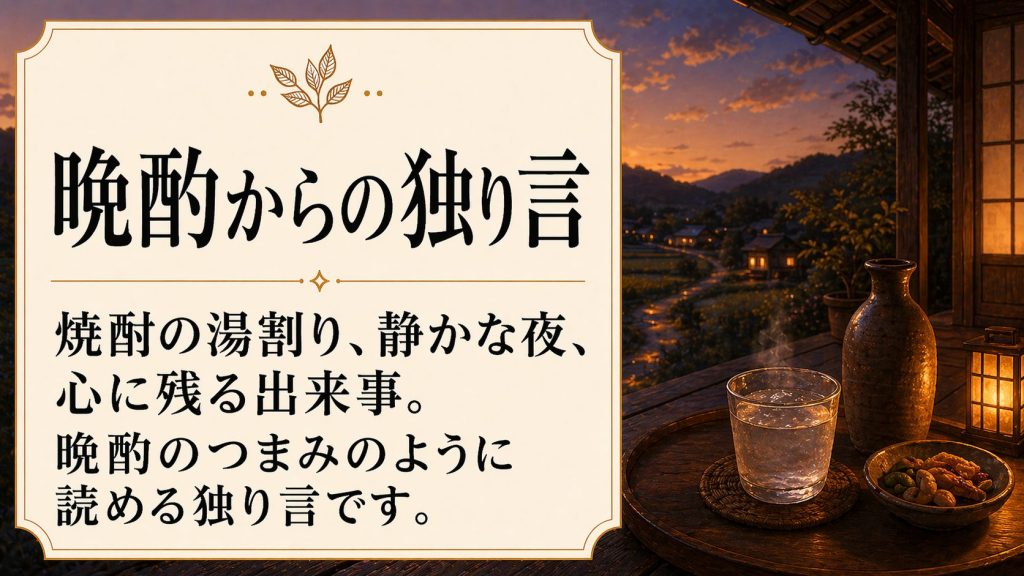 波乱万丈な人生をくぐり抜け、それでも沈まなかった男の地味な話を、晩酌のつまみのように読んでもらえたらと思います。